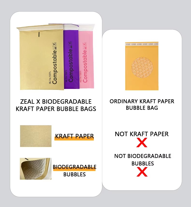 전문 종이 봉지 제조업체인 Zeal X는 맞춤형 크기, 로고 인쇄 및 종이 무게 옵션을 포함하여 완전히 맞춤형 생분해성 크라프트지 버블 메일러를 제공합니다. 이러한 퇴비화 가능한 우편물은 100% 생분해되고 무독성이며 무공해이므로 지속 가능한 포장 전략에 이상적입니다. 강력한 찢어짐 방지 기능, 가벼운 디자인, 빠른 배송을 위한 안정적인 보호 기능을 갖춘 당사의 크래프트 종이 버블 메일러는 친환경적이고 플라스틱이 없는 배송 솔루션을 찾는 글로벌 전자상거래 판매자의 신뢰를 받고 있습니다.