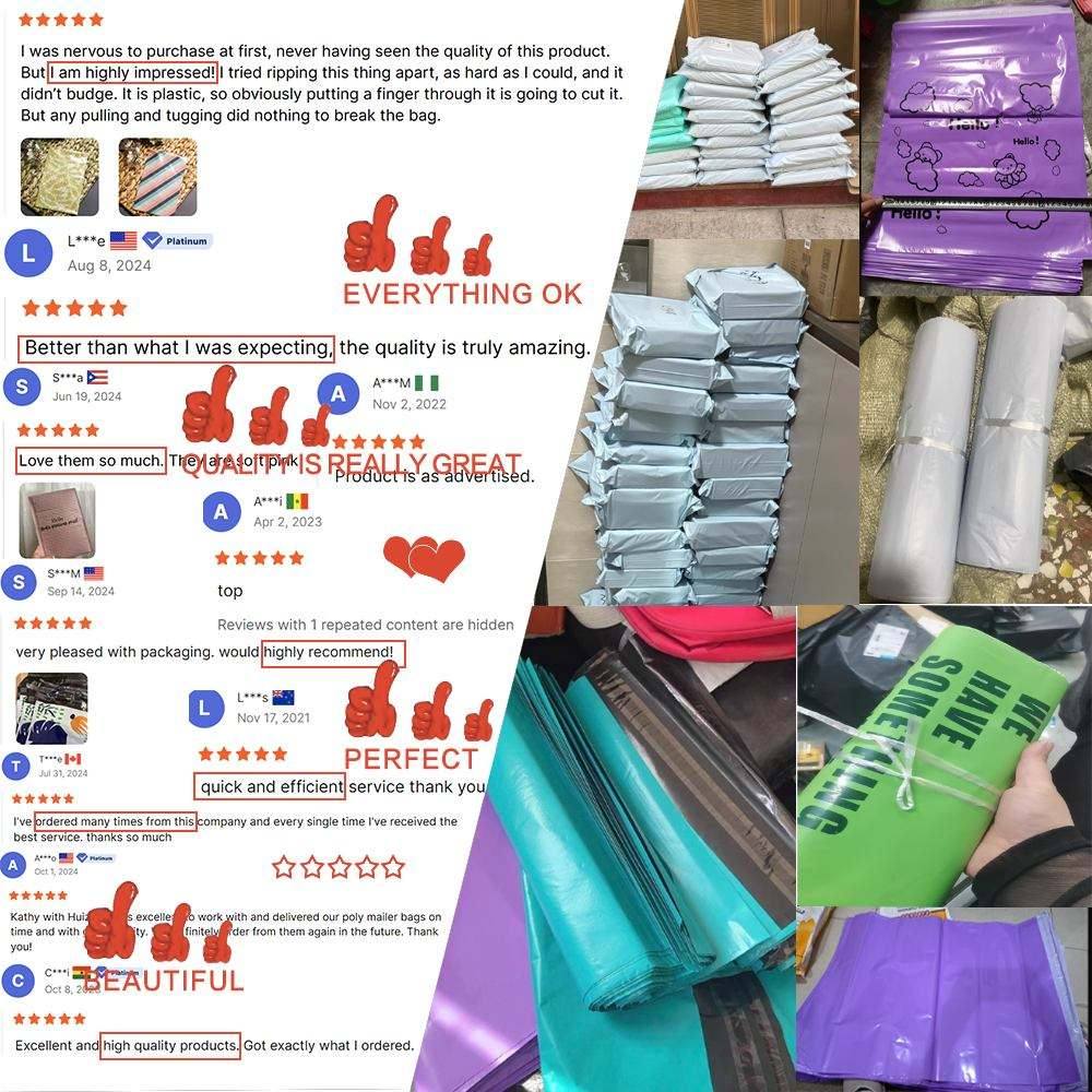 고품질 재활용 가능한 PE 소재로 제작된 당사의 폴리 메일러 백은 방수, 찢어짐 방지 기능을 갖추고 있으며 배송 중 의류, 액세서리 및 온라인 상점 품목에 대한 탁월한 보호 기능을 제공합니다.